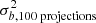 Mean bias and variance due to projection effect for the 4 clusters studied with 100 maps.