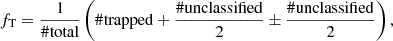 When all 1200 rays of a set have been classified as either reflected or trapped, or identified as unclassified due to numerical issues during the integration (see Appendix A.4), the trapped fraction fT of that set of rays could be determined. It is an estimate of the fraction of energy in the gravity mode cavity that is lost from the observable global mode due to the interaction with the internal magnetic field. The trapped fraction can be calculated as follows: