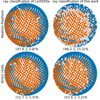 Fig. A.2. Sets of 1200 rays plotted as as unispheres parameterized by (θ, ϕ) = (θ0, α) for the model 2A with Bcen = Bcrit, cen, ω = 10 ωdyn, and l = 1. Trapped rays are shown as blue dots, reflected rays are shown as red diamonds, and unclassified rays are shown as gray squares. In the top row, we show rays for which we have used a Newton-Raphson iteration scheme for the correction of kr, which was used by Loi (2020a). In the bottom row, we show rays where we have used our method described in Sect. 2.4 to correct kr. In the left column, we employed the ray classification scheme of Loi (2020a) to decide whether a ray is trapped, reflected, or unclassified. In the right column, we used our ray classification scheme described in Appendix A.4. The trapped fraction fT of each set is indicated under its corresponding unisphere. |