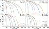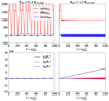 Fig. A.3. Reproduction of the lower two panels of Figure 4 of Loi (2020a) using our implementation of the ray tracing described in Sect. 2 for the model 2A. The limits of the axes are also similar to Figure 4 of Loi (2020a). In the left column, we show the behavior of the ray with Bcen = 0.3 Bcrit, cen, which is the value used by Loi (2020a). In the right column, we show how the ray behaves with Bcen = 1.2 Bcrit, cen. This value has been selected such that the ray undergoes the same number of reflections as the ray shown in Figure 4 of Loi (2020a). The remaining initial parameters are identical to Loi (2020a) (i.e., θ0 = 99°, α = 40.5°, ω = 10 ωdyn, and l = 1). |
