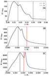 In Figs. B.1 and B.2, we show the trapped fractions for the models 1A, 1B, and 1C, as well as 1a, 1b, 2a, and 2b. They follow the same trends as the trapped fractions shown in Figs. 3 and 4. In addition, we shown in Fig. B.3 the trapped fractions corresponding to a spherical degree of l = 10 and 100 for model 1A. They also follow the same trends.