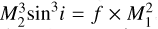 Here, M1 and M2 are the mass of the primary and secondary, respectively, with Porb being the orbital period, K the amplitude of the RV curve, i the inclination, and G the gravitational constant. Since f = 3 × 1030 g in our case, M1 ≫ M2 which leads to
