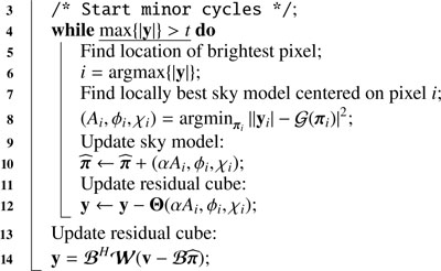 In this section, we describe the deconvolution method used for Faraday synthesis. We introduce modifications to the approach developed by Bell & Enßlin (2012) to better integrate it into the DDFACET framework, resulting in direction-dependent Faraday synthesis CLEAN (DDFSCLEAN). The algorithm is outlined in Algorithm 1, and we provide a more detailed explanation below.