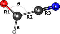 HCOCN | 0.00 | 0.00 | R2 = 1.469, R3 = 1.173 | Ae = 66.0362317, | ω3 = 1705.6, ω4 = 1407.5, | |