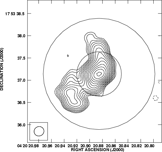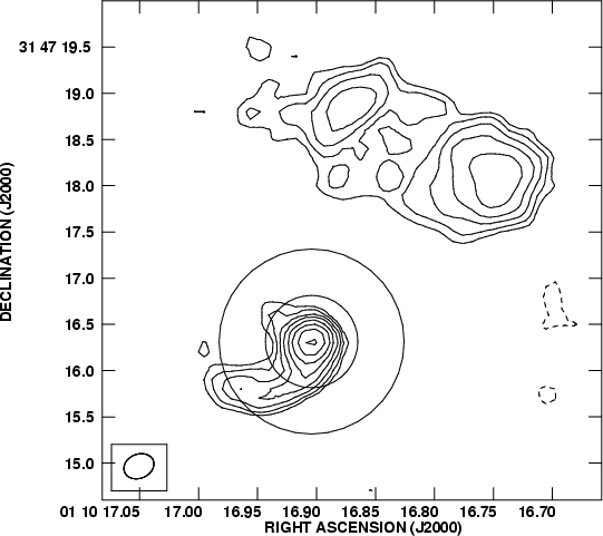 3C 172 north hot spot. 8.4 GHz VLA image from Kharb et al. (2008) with CLEAN restoring beam FWHM 0.26 |