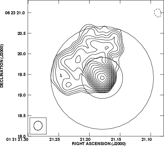 3C 6.1 north hot spot. 8.4 GHz VLA image from Kharb et al. (2008) with CLEAN restoring beam FWHM 0.23 |