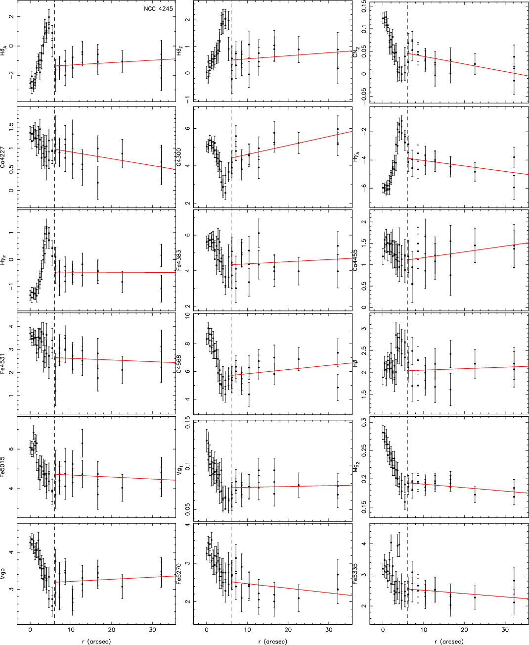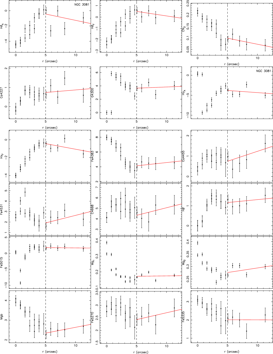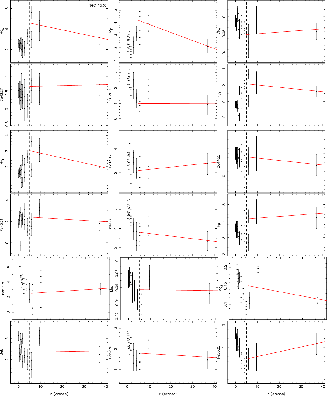 Figure A.1 shows the line-strength gradients in the bar region for all the galaxies.
