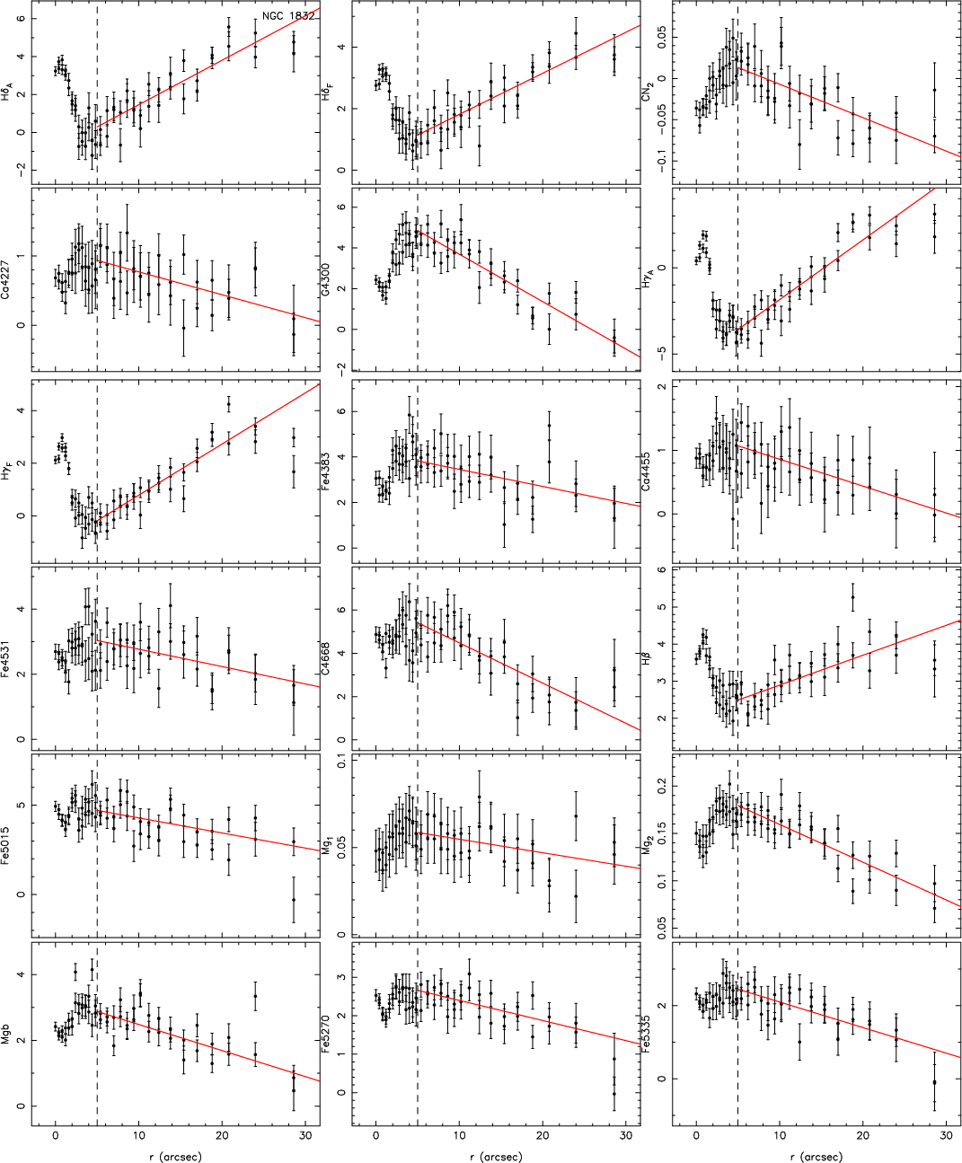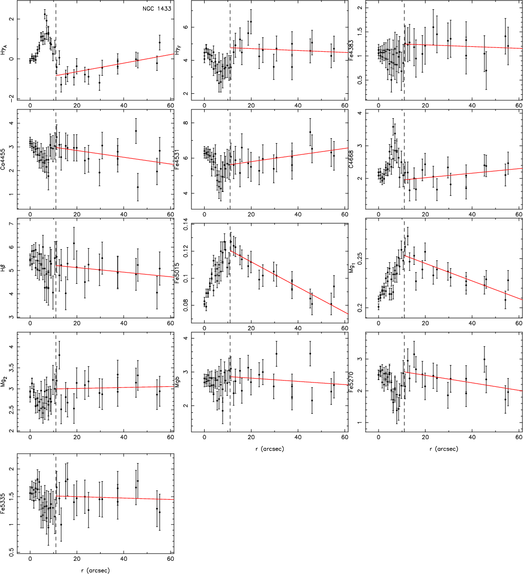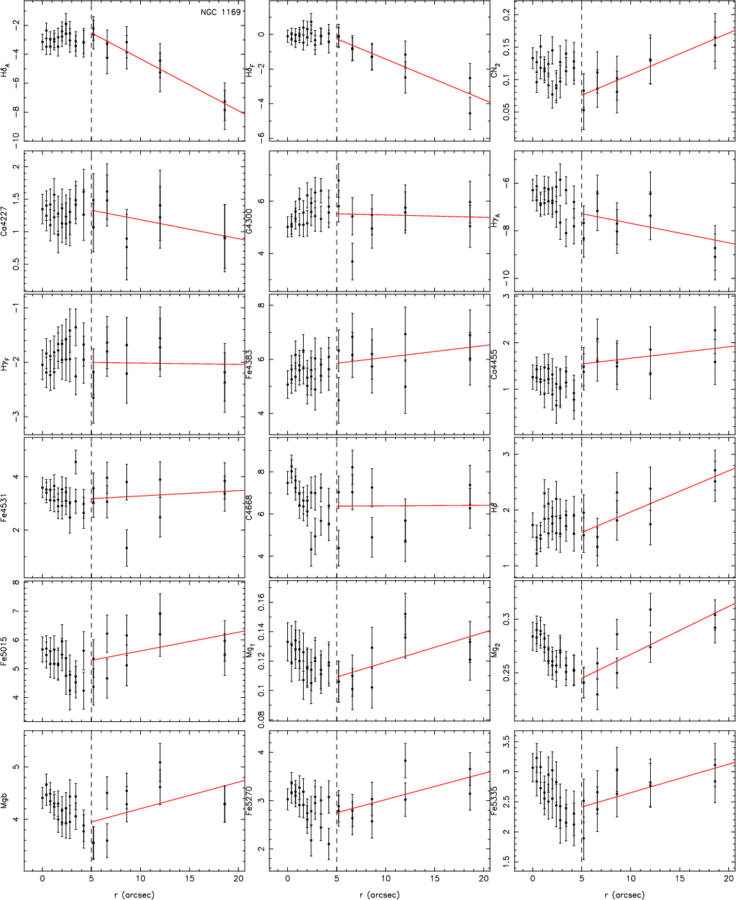 Figure A.1 shows the line-strength gradients in the bar region for all the galaxies.