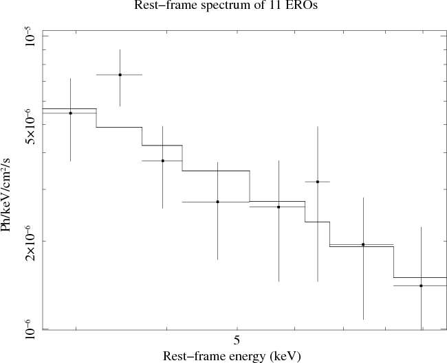 Figure A.2: Rest-frame X-ray spectrum of the 11 EROs that are individually detected in the Chandra observations. The underlying model consists of an absorbed power law. |