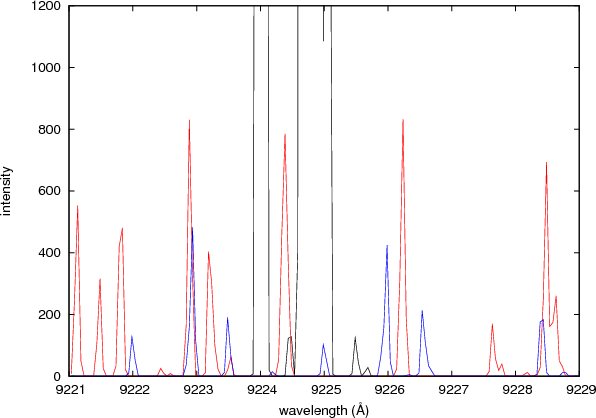 The line profile of the strongest lines can be fitted by a Gaussian, or their intensity can be estimated by direct integration, providing sets of