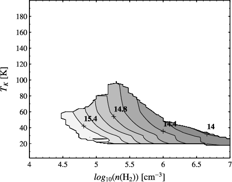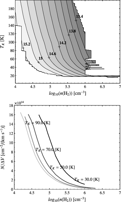 temperature and molecular hydrogen density. That is, a given column density can be obtained with either high