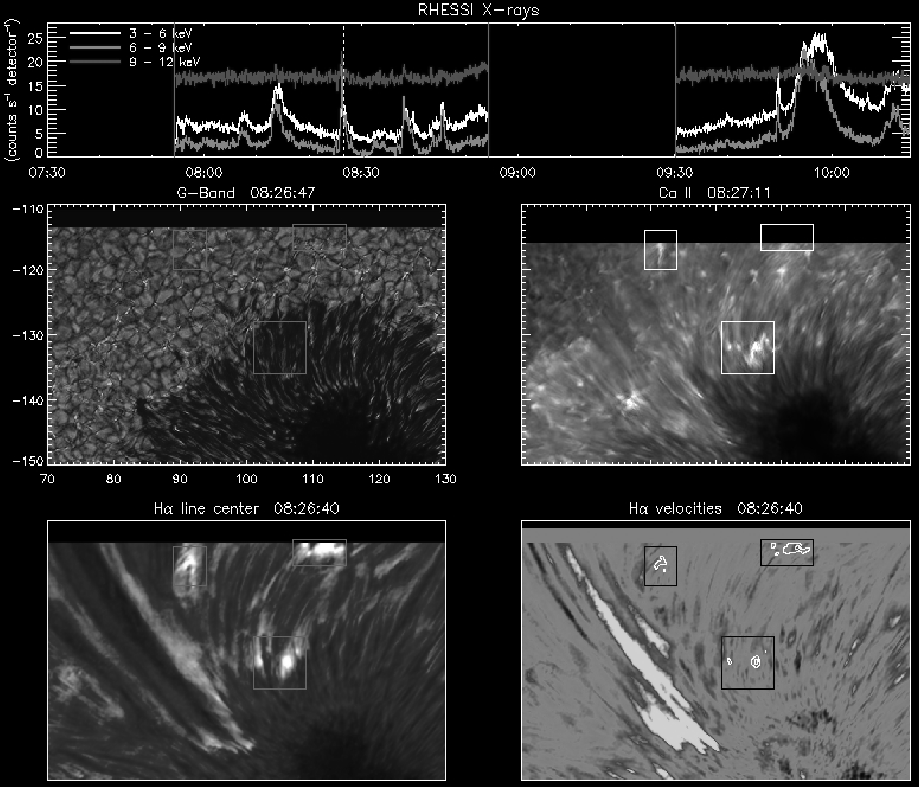 Black and white snapshot of a movie showing photospheric and chromospheric images obtained during the DOT observing run on July 4, 2006 ( |