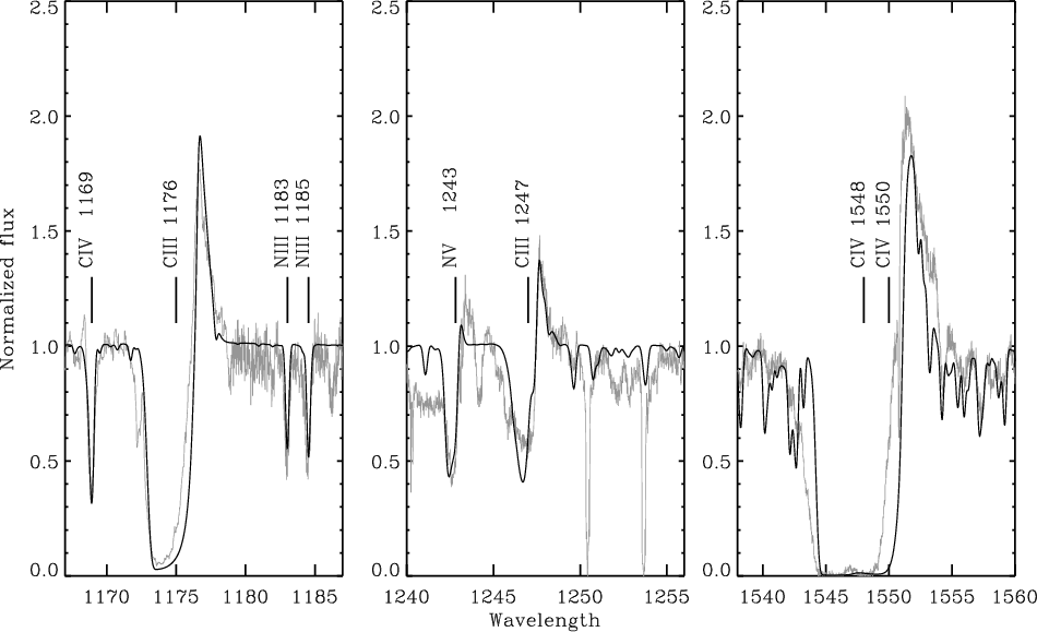 Figure D.1: The fits to the nitrogen and FeIV lines. Note the nebular emission line C/ II 1761 Å. |