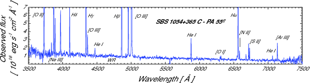 IDS 2.5 m INT spectrum for SBS 1054+364 using a slit with PA 55 |