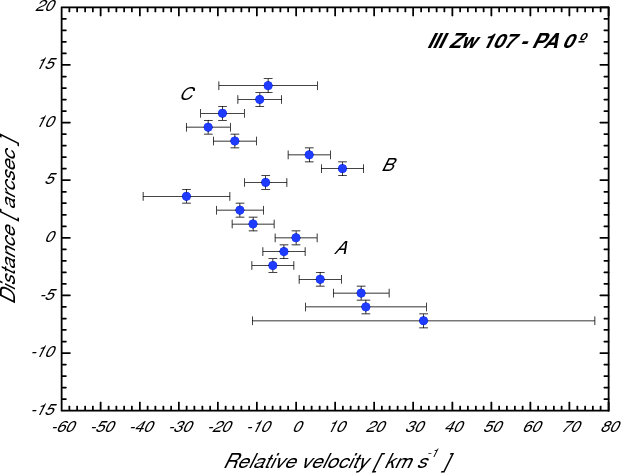 for knots analyzed in III Zw 107 (regions A, B, and C) and