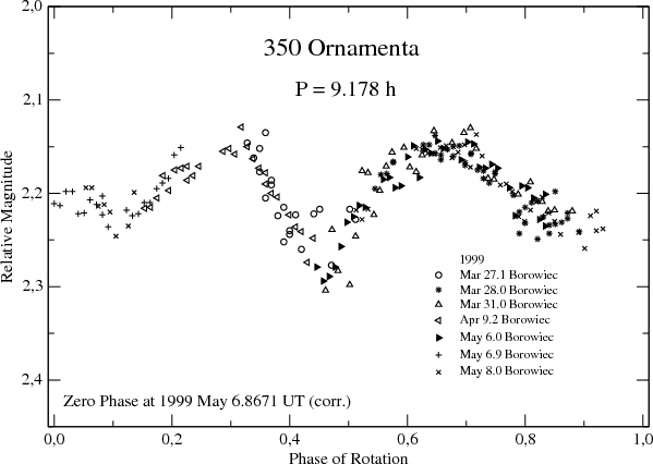 Figure 1: Composite lightcurve of 350 Ornamenta in 1999. |