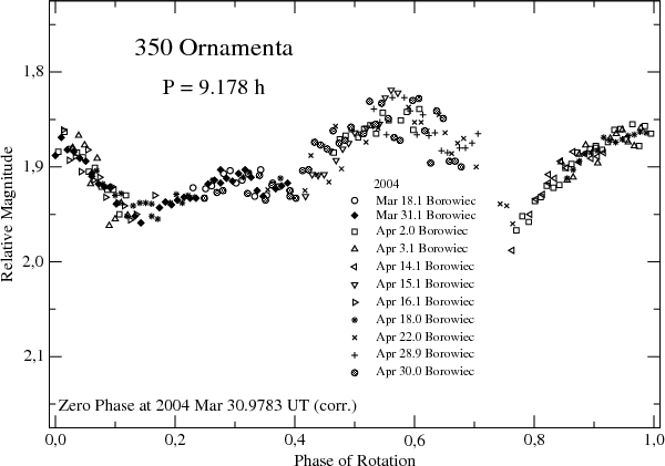 Figure 2: Composite lightcurve of 350 Ornamenta in 2004. |