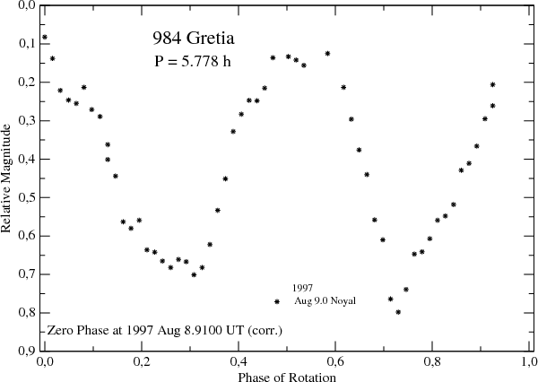 Figure 10: Lightcurve of 984 Gretia in 1997. |