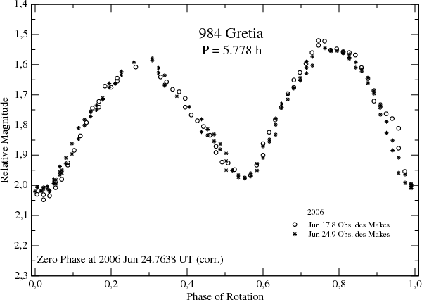 Figure 14: Composite lightcurve of 984 Gretia in 2006. |