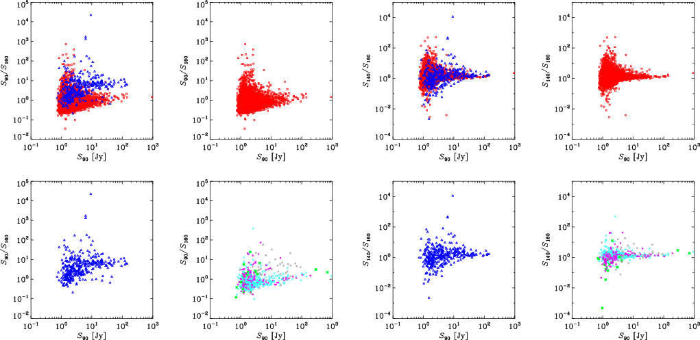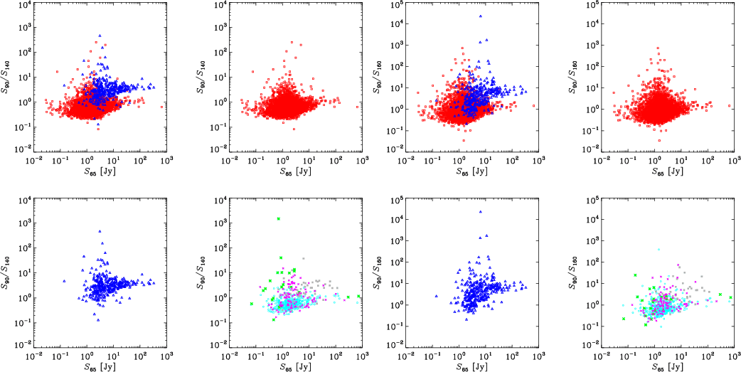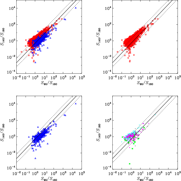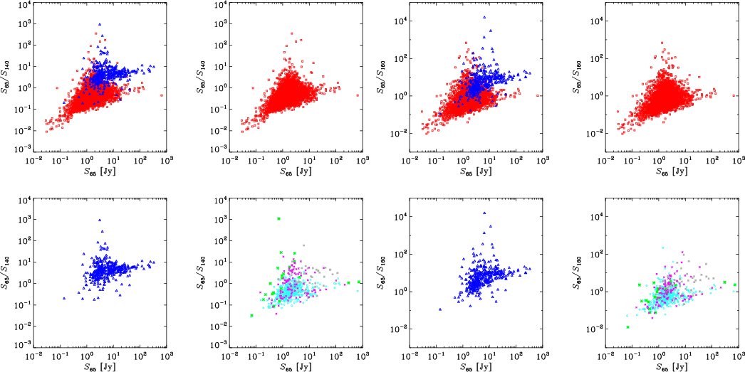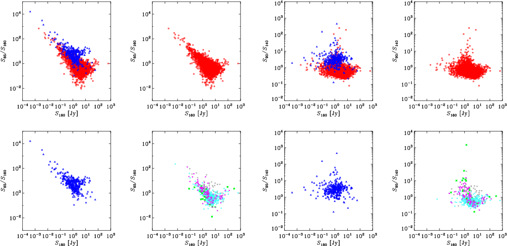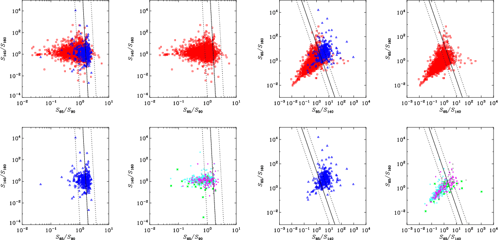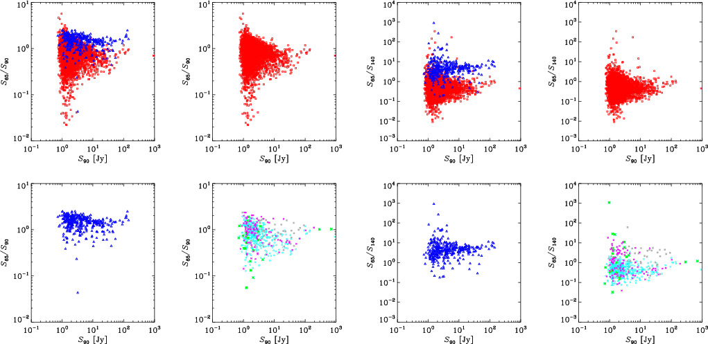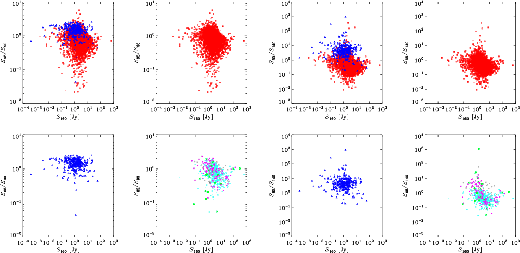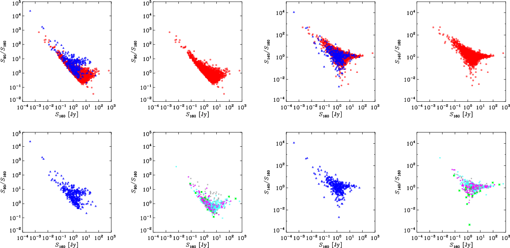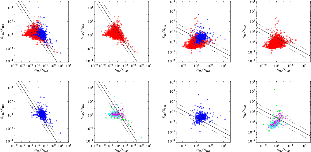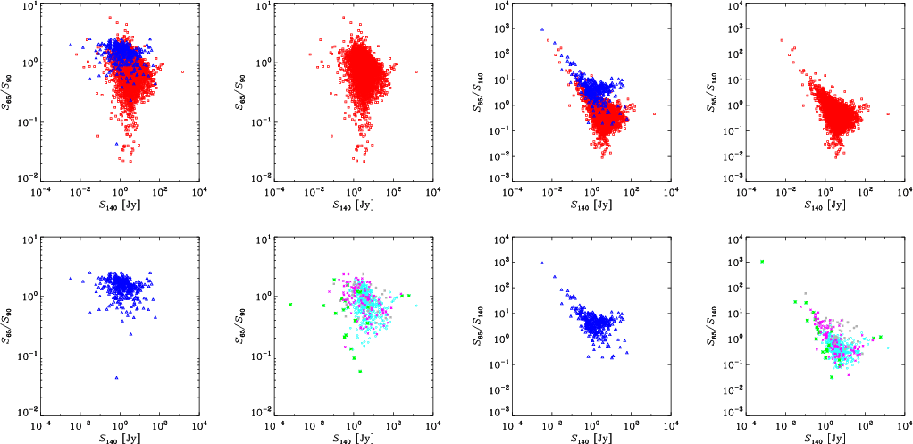 Figure A.7: Same as Fig. 3 but for S140- S65/S160 ( four panels on the left side) and S140- S90/S140 ( four panels on the right side). |