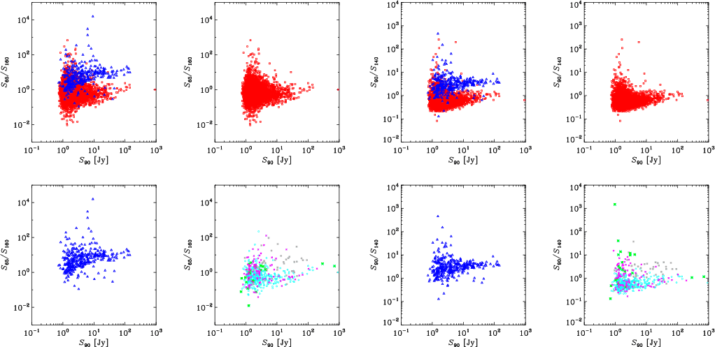 Figure B.2: Same as Fig. 5 but for S90/S140- S65/S140 ( four panels on the left side) and S90/S160- S65/S140 ( four panels on the right side). |