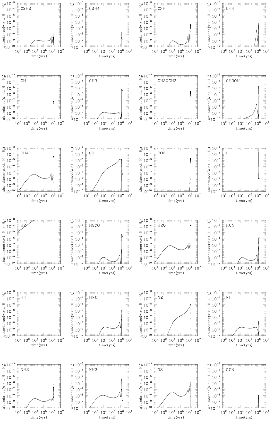 Figure 2: Model 2 - Free fall collapse from 1000 cm-3 - gas phase data. |