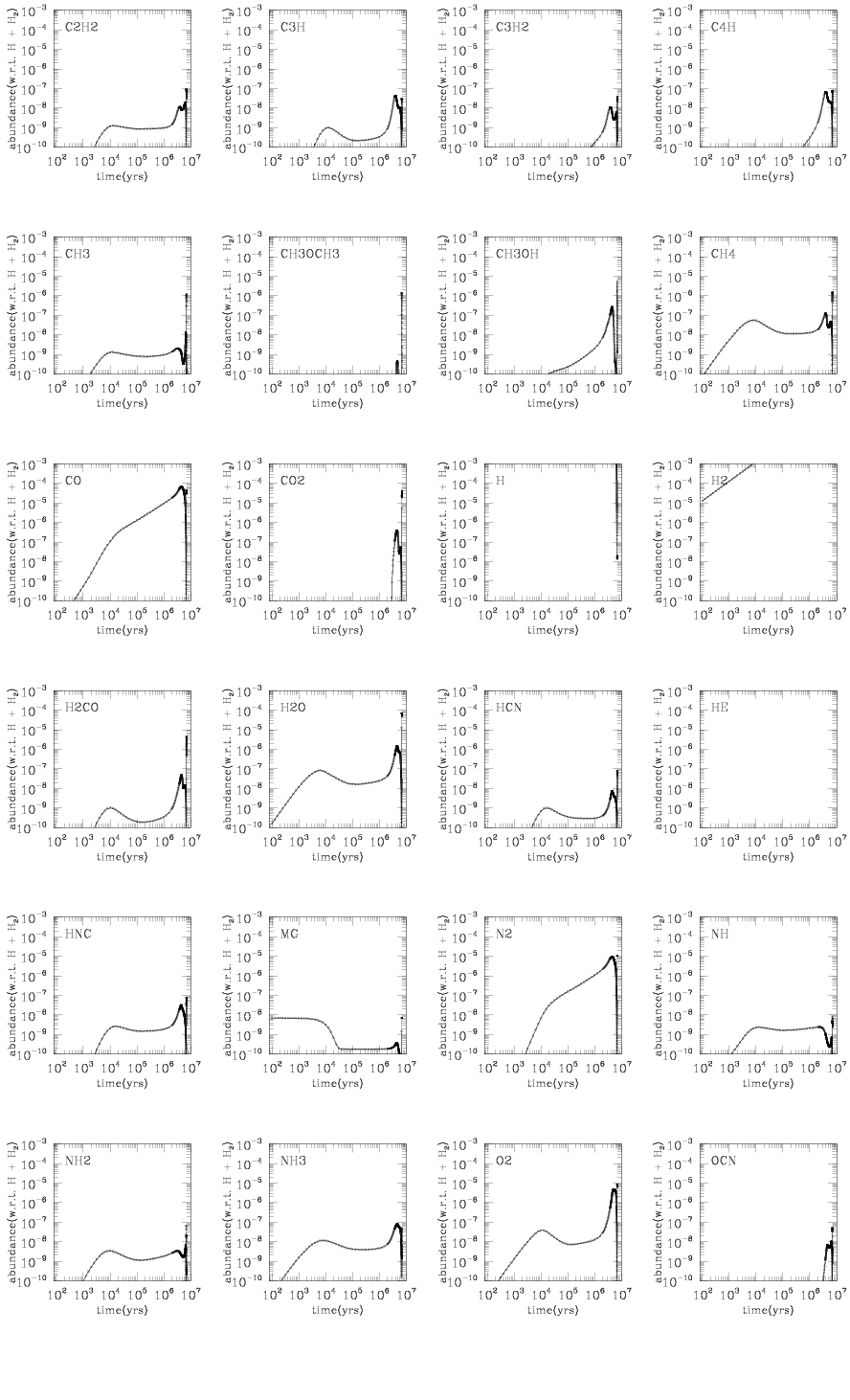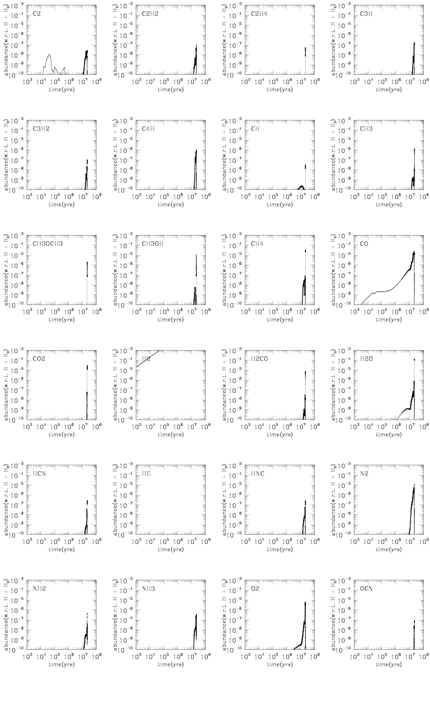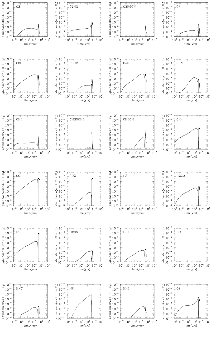 Figure 3: Model 3 - Free fall collapse from 10 000 cm-3 - gas phase data. |