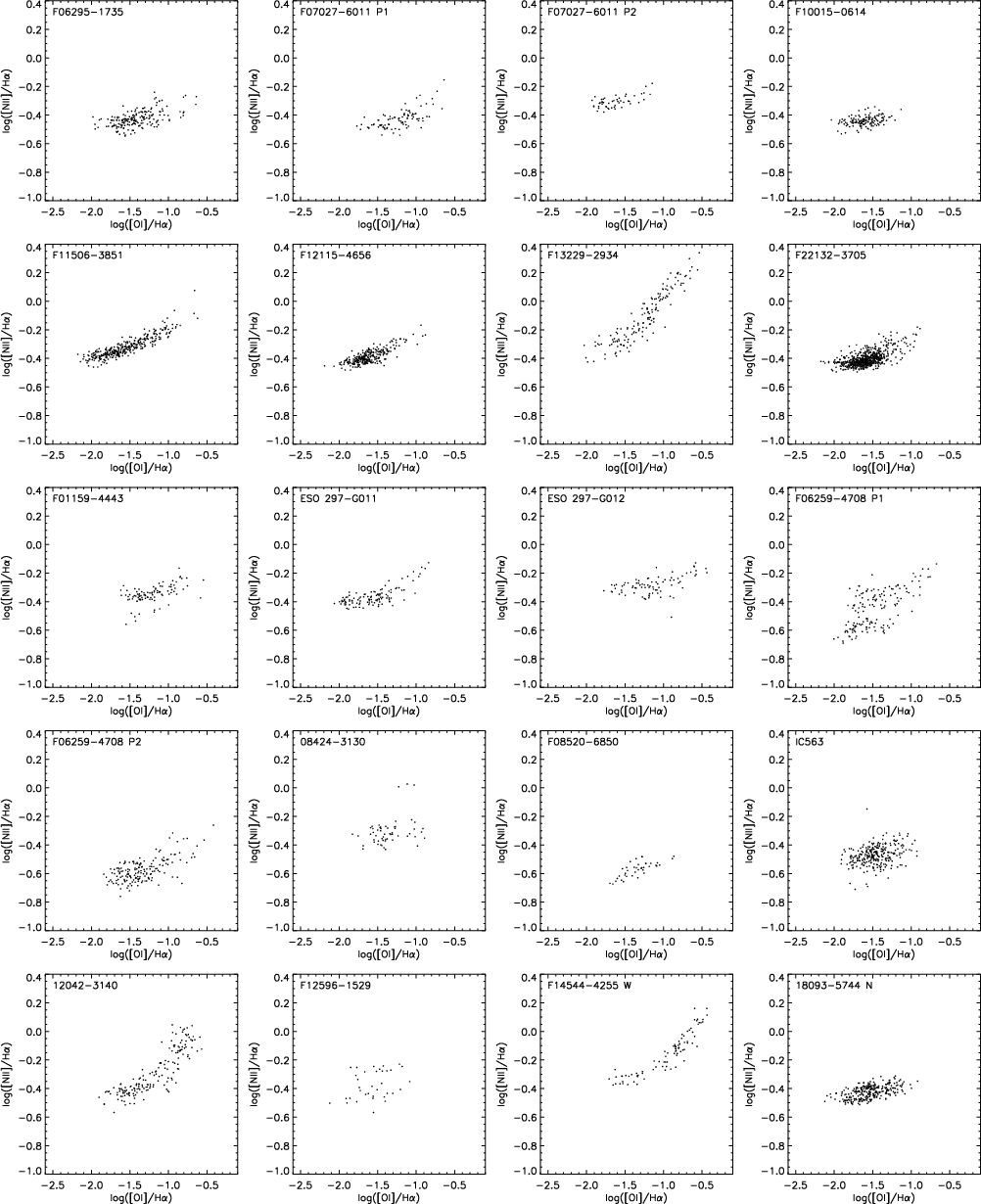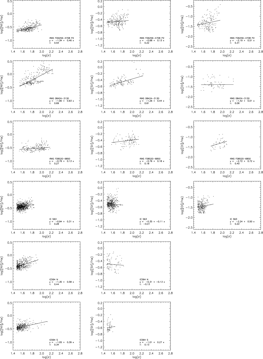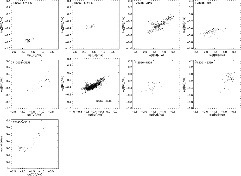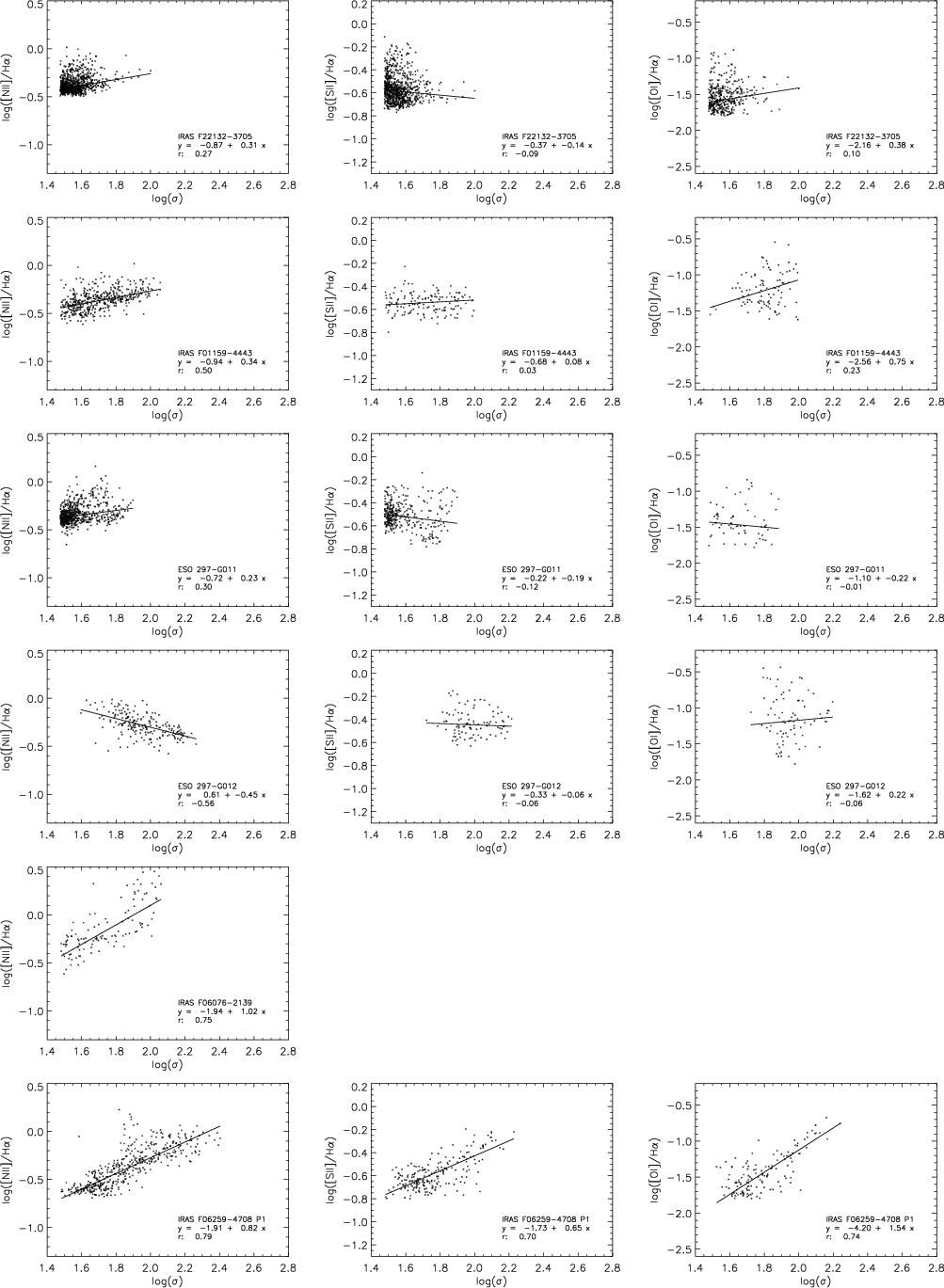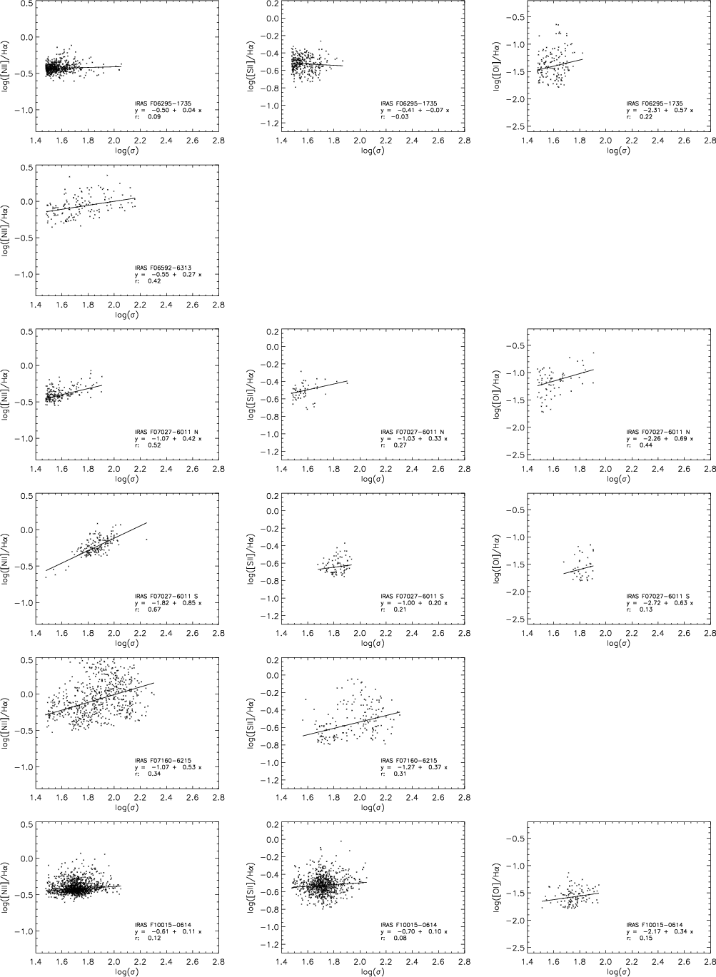 Figure 17: Line ratios vs. velocity dispersions relation for the individual pointings. |