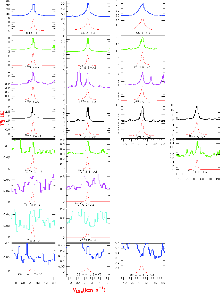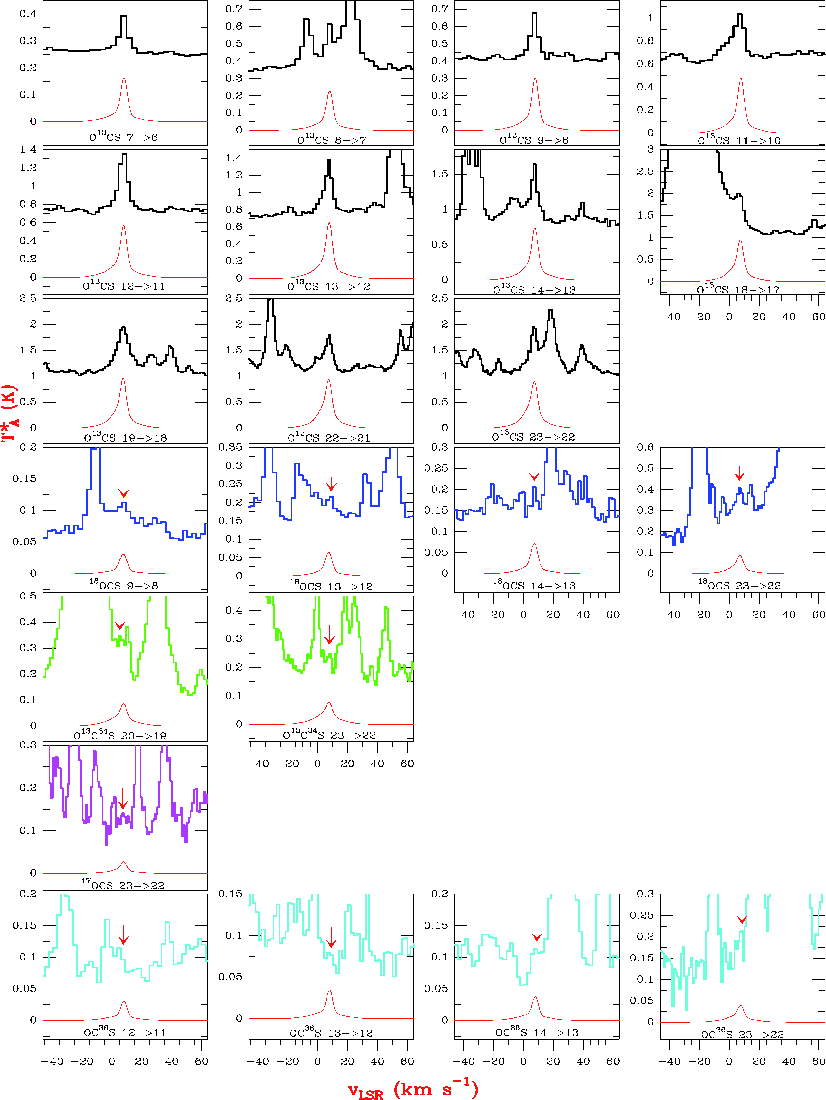 (thin curves) of O13CS, 18OCS, O13C34S,
