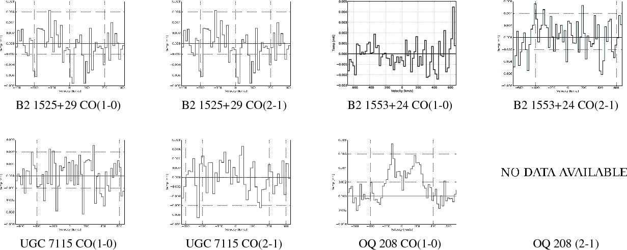 - B2 0836+29B: It is clearly detected in the CO(1-0) emission line, but not in CO(2-1). There is nothing peculiar in its optical image.
