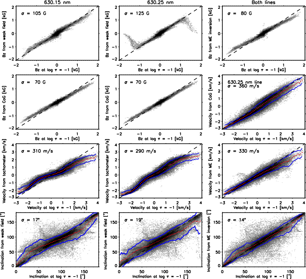 Scatter plots of the longitudinal magnetic field, Bz (first