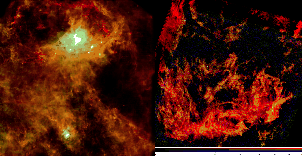A column density map was derived for each region from the Herschel images smoothed to the SPIRE 500