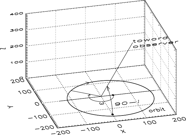 Most of the calculations discussed here are limited to the two-dimensional (2D) plane of the binary orbit. Only in Sect. A.7 do we rotate the results of the 2D calculations into the three-dimensional (3D) simulation volume that is used to calculate the resulting flux.