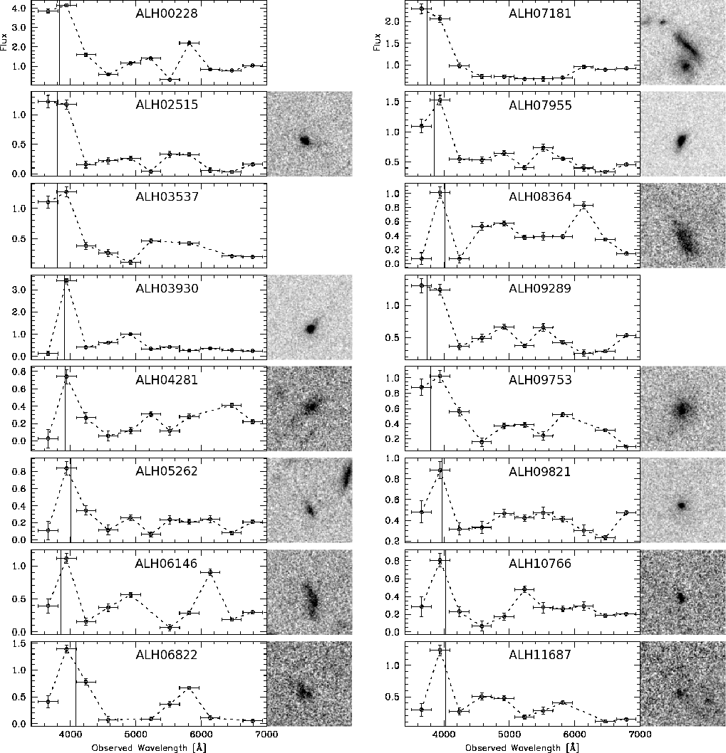 whose UV rest-frame drop is sampled with the filters. As an example,