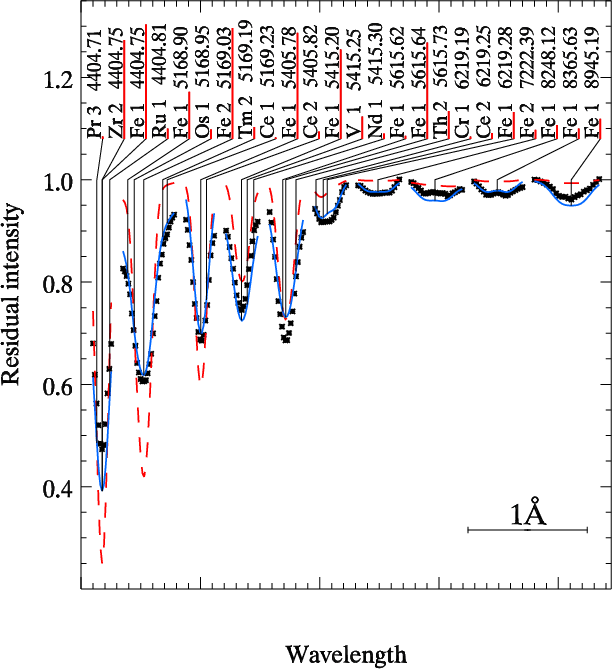 Table 3: List of Si, Ca, Fe, and Ba spectral lines used for reconstruction of chemical stratification.