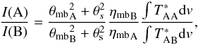 As can be seen above, the line ratios depend on the source and beam sizes with the factor . The source size θs can be ignored if both beam sizes θmbA,θmbB ≫ θs. If the beam sizes θmbA ≈ θmbB, the source size will also cancel. However, if θs is comparable to the beam sizes, and θmbA and θmbB are non-similar, the source size becomes an important factor.