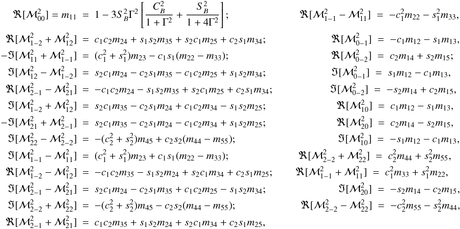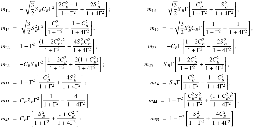 appearing in those equations. We introduce the abbreviations, CB = cosθB, SB = sinθB, c1 = cosχB, s1 = sinχB, c2 = cos2χB, and s2 = sin2χB. In terms of the elements of the