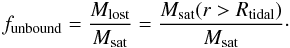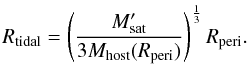 (A.4)The tidal radius computed in this two-step process also allows a very good estimate of the baryonic mass loss of the satellite when it is assumed that all mass outside this tidal radius is lost, i.e.,