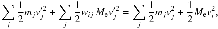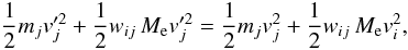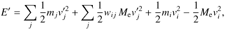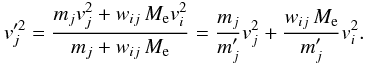 (A.4)As the mass of particles changes, to conserve the total energy, it is necessary to modify the velocities of the particles. We neglect to correct the change in potential energy. Before the mass redistribution, the energy of the particles involved is