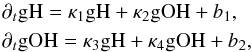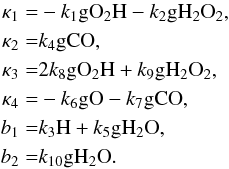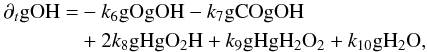 From the above reaction list we may write the evolution equation of gH and gOH as4