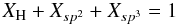 (B.2)Solutions to these equations are found by combining or “collapsing” two of the variables into a single one, i.e., Xsp3/Xsp2 ≡ R, and solving for R as a function of XH. It is therefore evident that the addition of any new structural component into the system introduces a new variable, which renders the resulting equations unsolvable because we then have two equations and four variables. This limitation could be circumvented in several ways: