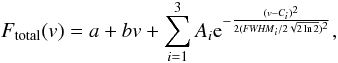 We describe here in detail the three Gaussian fits to the independent lines in the outburst, and present a few more examples of the resulting best fits to some of the metallic lines (see Figs. A.1 to A.5). The fits were done with IRAF task ngaussfit, restricting the fitting range to ±250 km s-1 (or less, in the case of proximity to another feature). The fitting was done interactively, paying special attention to the continuum and the presence of the NC. The model fitted to the data can be written as (A.1)where a and b are the continuum level and slope, Ai are the amplitudes of the different Gaussian components, Ci are the Gaussian centers (in velocity), and FWHMi are the FWHM of the three Gaussian components. The full collection of best fits to the lines unaffected by blending is shown in Table A.1. While the BC of neutral and ionized metallic lines observed in May