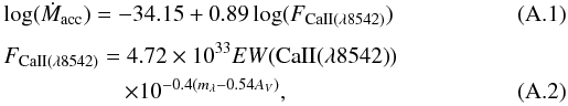 We used the following equations to estimate the accretion rate from the CaII triplet (these equations were derived from the accretion line profile study by Muzerolle et al. 1998 and are discussed in more detail in Comerón et al. 2003):
