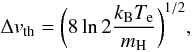 (A.2)where kB is the Boltzmann constant, mH is the hydrogen-atom mass, and it is assumed that all the gas is thermalized to the electron temperature Te. For a pure-hydrogen gas with Te = 9000 K, Δvth = 20.3 km s-1.
