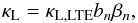 Let bn be the ratio of the population of level n to its LTE population. Then the actual line absorption coefficient κL is related to the LTE coefficient κL,LTE by (Gordon & Sorochenko 2002)