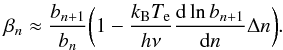 (B.2)While 0 < bn < 1 expresses the non-LTE level depopulation, βn can be negative when there are conditions for maser amplification.