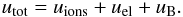 The total non-thermal energy density of the radio lobes is written as the sum of the ions, electrons, and magnetic field contributions: