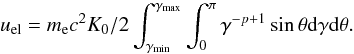 (A.3)where the electron’s Lorentz factor γ is in the range from γmin to γmax and we assumed an isotropic distribution of the pith angle θ between the local direction of the magnetic field and the electron velocity. Thus, the electron energy density is