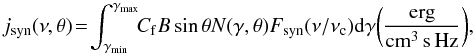 (A.5)where Fsyn(ν/νc) is the synchrotron kernel (see e.g. Blumenthal & Gould 1970; Rybicki & Lightman 1979), while