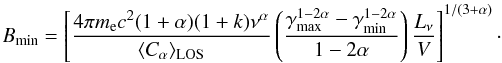 (A.7)\newpage\noindentwhere V is the source’s volume, see also the discussion in Murgia et al. (2010). In the power law regime, νmin ≪ ν ≪ νmax, we obtain the well-known formula for the synchrotron monochromatic power